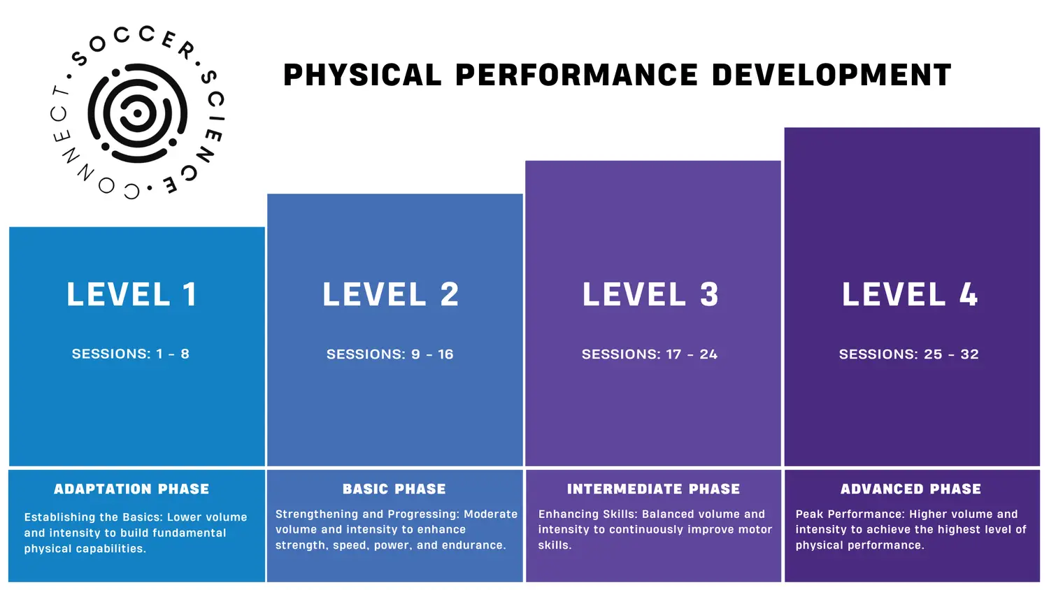 Structured training for real results: 32 progressive sessions across 4 levels, tailored to each athlete’s biological individuality and development stage. The program enhances physical abilities, movement quality, and body awareness—promoting balanced performance and injury prevention through age-appropriate challenges.